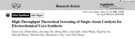天津大学&海南大学邓意达/王浩志&南洋理工大学徐梽川Angew(刘远博士一作):电化学尿素合成的高通量单原子催化剂理论筛选